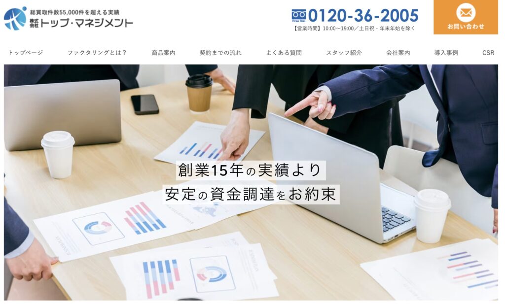 創業15年の実績を持つファクタリング会社で、事業資金の調達をオンラインで完結させるサービスを中心に、あらゆる業種・事業規模に対応する商品ラインナップを備えています。
