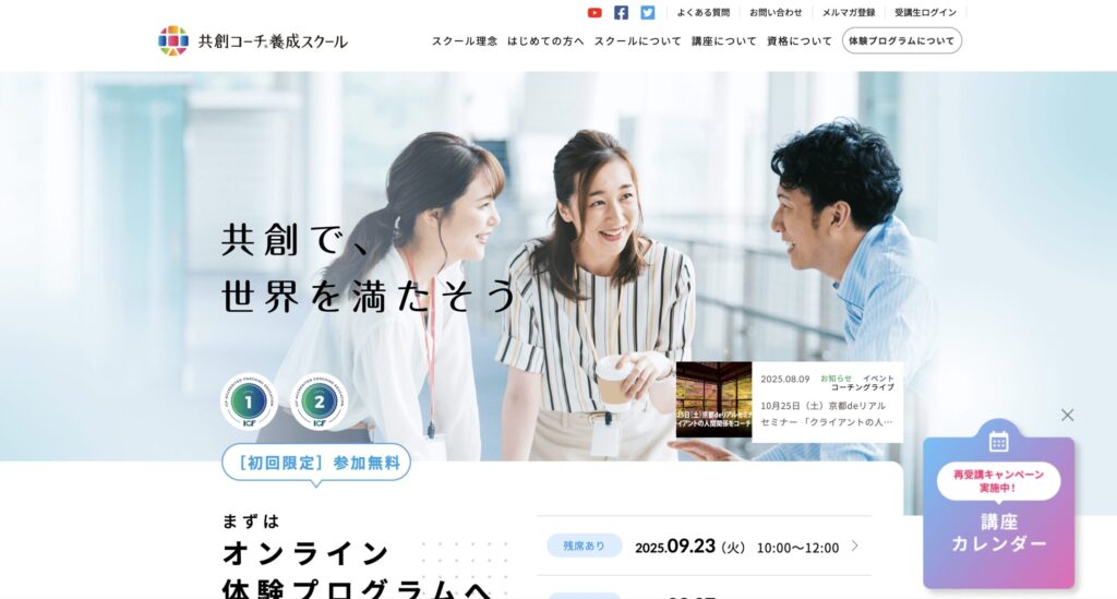 共創コーチング株式会社は、オンラインで受講可能なコーチ養成スクールを運営し、世界基準のスキルと資格取得を目指せるプログラムを提供しています。