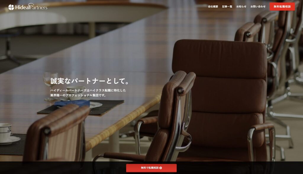 ハイディールパートナーズは、コンサルティング業界を中心にハイクラス向けの転職支援にて豊富な実績を持つ転職エージェント会社です。