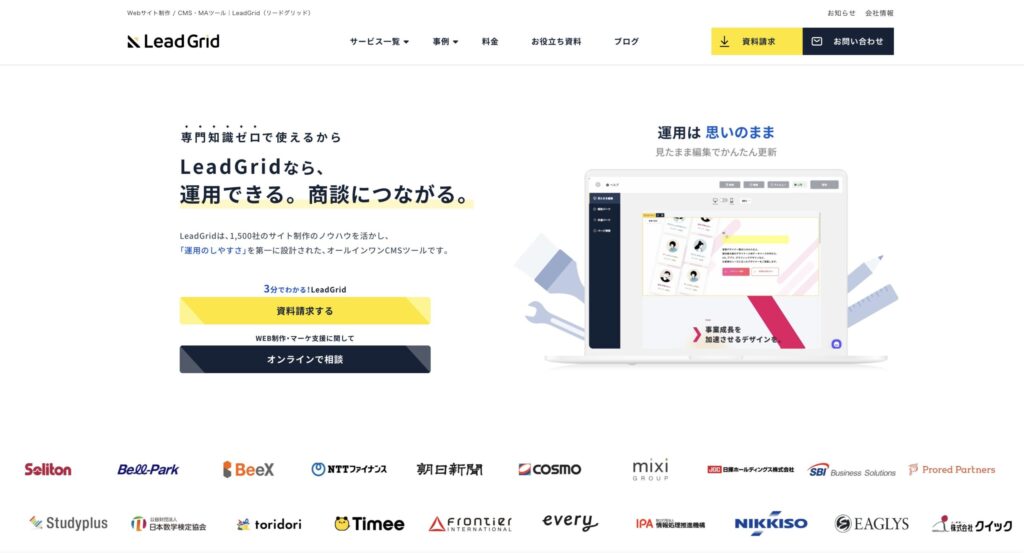 LeadGridはWebサイト制作からコンテンツSEO、問い合わせ管理、LP制作などWebマーケティングに必要な機能を開発したCMSです。