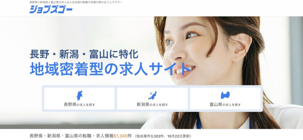 ジョブズゴーは、長野県・新潟県・富山県に特化した地域密着型の求人・転職サイトです。