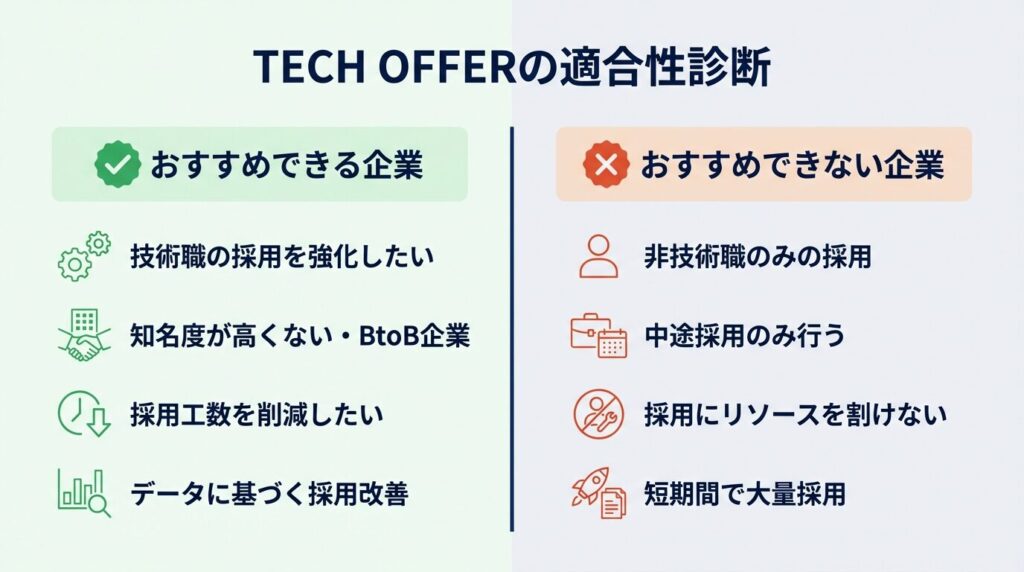 最後に、テックオファーの活用が特に効果的な企業と、逆におすすめできない企業の特徴について解説します。