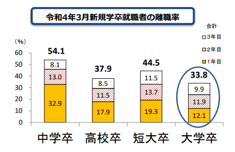 大学新卒の3年以内離職率は3割以上