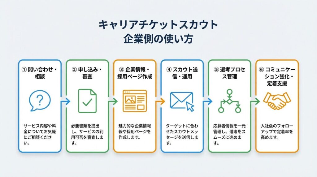 ここでは、企業側のキャリアチケットスカウトの使い方について、具体的な各ステップの手順とポイントをわかりやすく解説します。