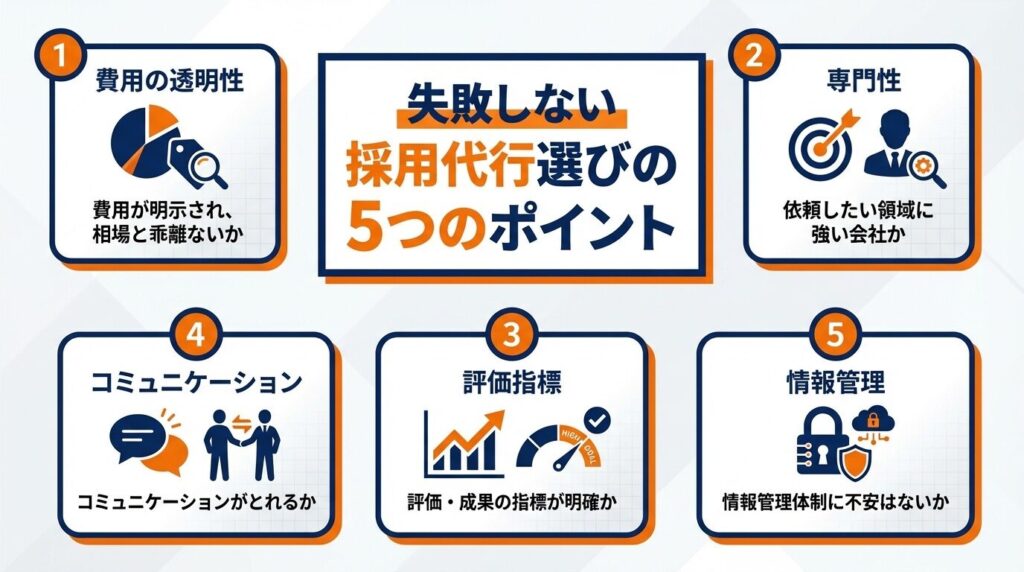 以下では、採用代行業者選択における重要なポイントを詳しく見ていきましょう。