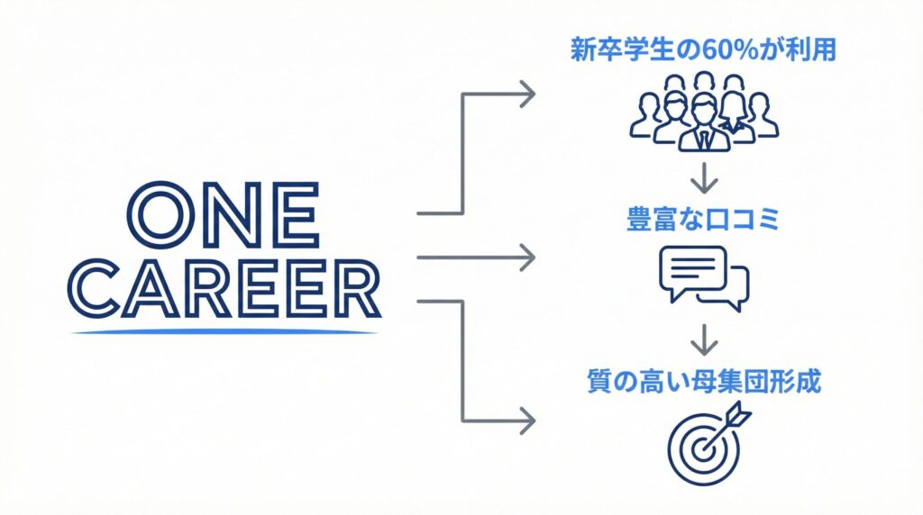 ワンキャリアは、新卒学生の約60%が利用している国内トップクラスの就活プラットフォームです。特に、東京や大阪といった大都市圏での利用率が高く、有名大学の学生にも広く支持されています。