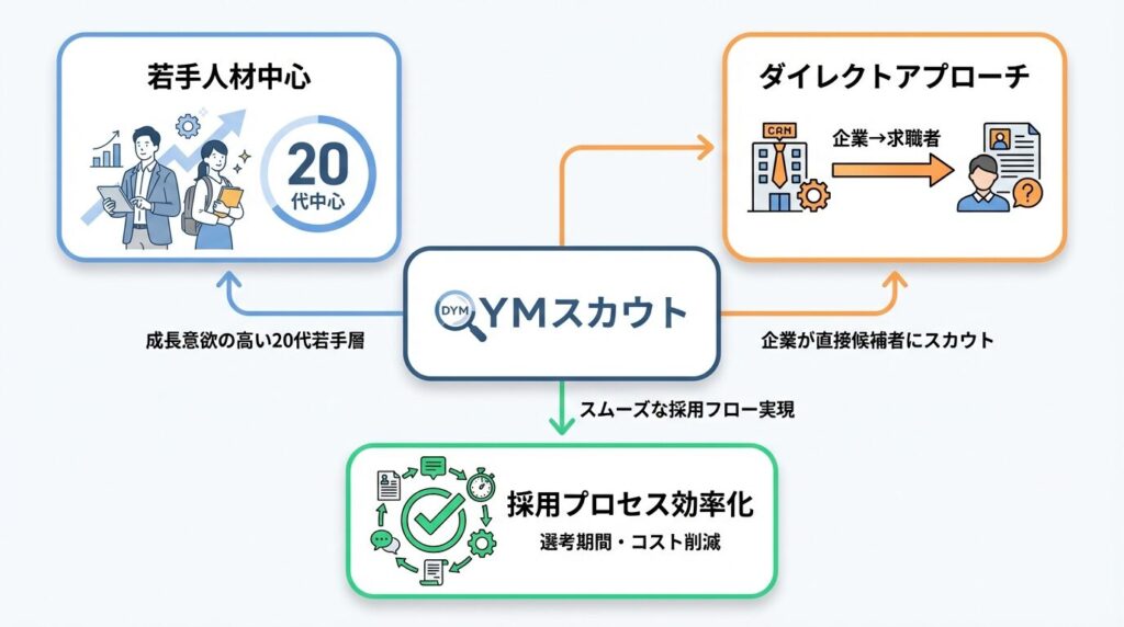 DYMスカウトは若手人材に特化したスカウトサービスとして、20代の優秀な人材との接点を増やしたい企業に有効な選択肢です。