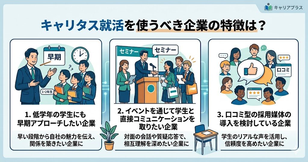 この章では、キャリタス就活を使うべき企業の特徴を整理しています。