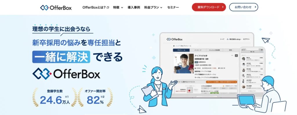 OfferBox(オファーボックス)は、新卒スカウト型採用サービスの中でもトップクラスの学生登録数を誇るプラットフォームです。
