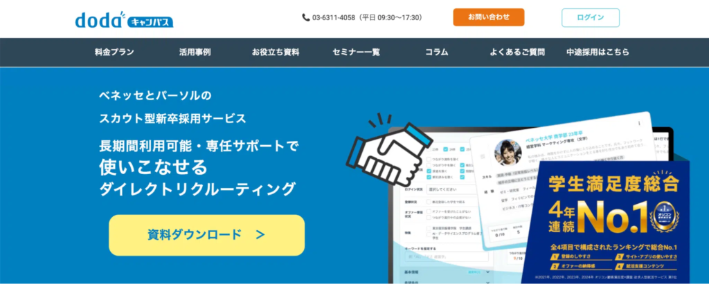 『dodaキャンパス』は、2017年に株式会社ベネッセi-キャリアと、求人サイト「doda」を運営するパーソルキャリア株式会社が共同で立ち上げた、新卒向けスカウト型採用サービスです。