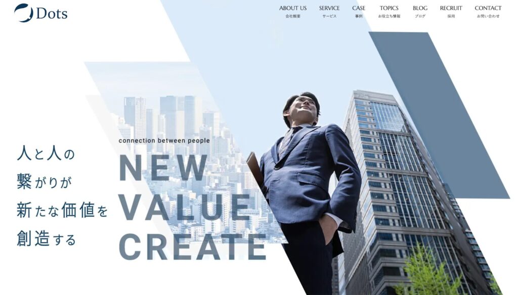 株式会社Dotsは、中小企業の企業改革を支援する採用代行会社です。採用と人事評価の2軸を中心とした事業展開を行っており、採用活動前の社内環境改善から入社後の定着・パフォーマンス向上までを一気通貫してサポートします。