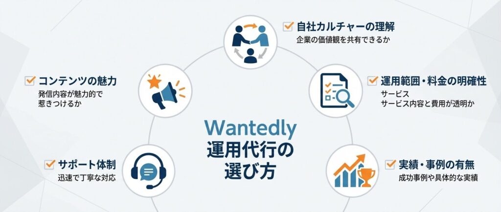 この記事では、特におすすめの運用代行会社を10選お伝えしました。Wantedlyの運用は、特に企業のストーリーを正しくセンスよく反映できるかが重要です。利用前には価格だけでなく、コミュニケーションが取りやすいかやどのような実績があるかなどにも注目するとよいでしょう。