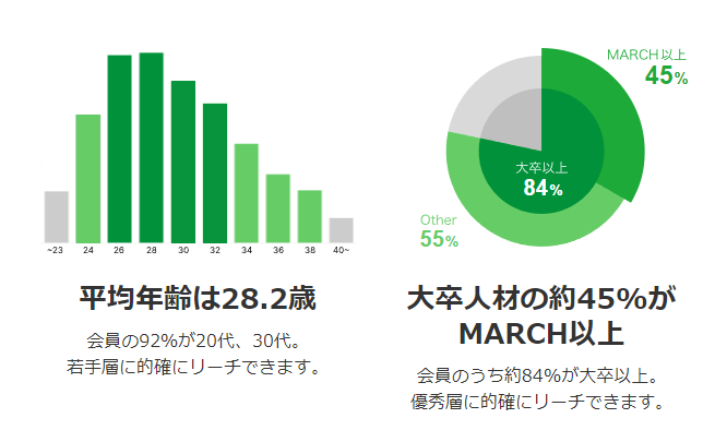 - 20代~30代のMARCH以上の転職者が主なユーザー層