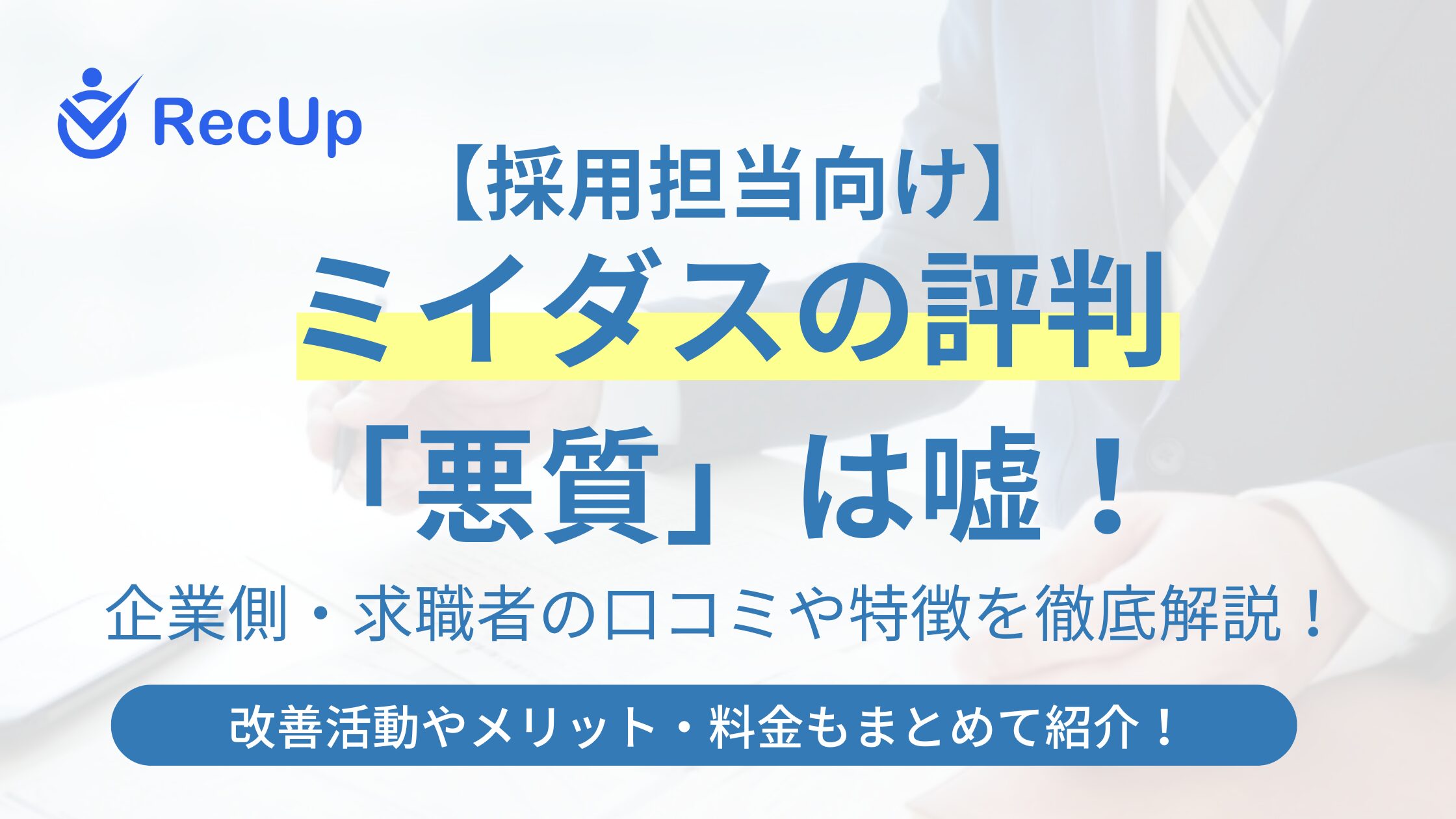 本記事では、人事担当者や採用責任者の視点から、ミイダスの実際の評判や導入メリット、他サービスとの比較を徹底解説していきます。