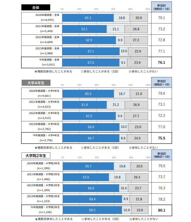 内閣府「学生の就職・採用活動開始時期等に関する調査(2024年12月)」 https://www5.cao.go.jp/keizai1/gakuseichosa/pdf/20241206_honbun_print.pdf