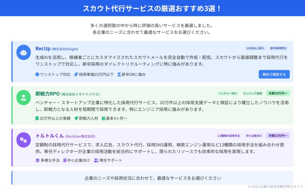 スカウト代行サービスは、多くの企業が利用する採用において重要なツールですが、その選択肢は非常に多岐に渡ります。