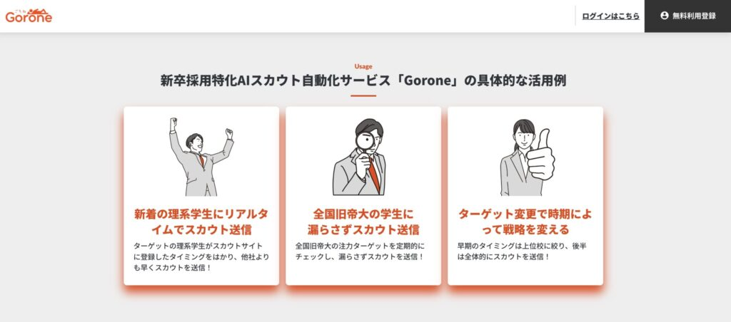 | スカウトメールの作成・送信 | 文面作成、パーソナライズ、送信タイミングの最適化 |