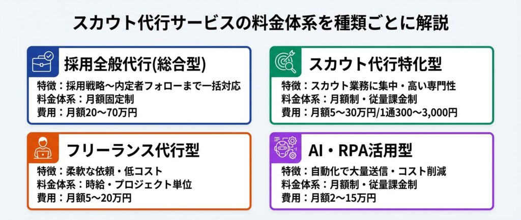 - スカウト代行サービスの種類別料金体系 がわかる
