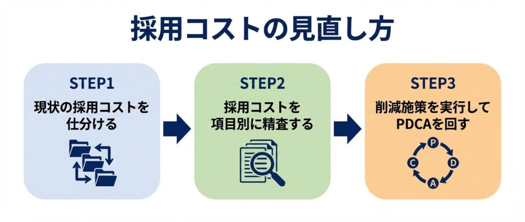 ここでは、採用コスト見直しの3つのステップについて詳しく解説していきます。