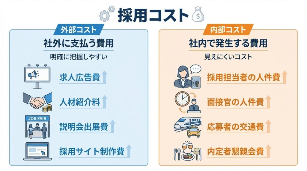 | 外部コスト | 求人広告費 | 求人サイト掲載費、求人誌掲載費 |