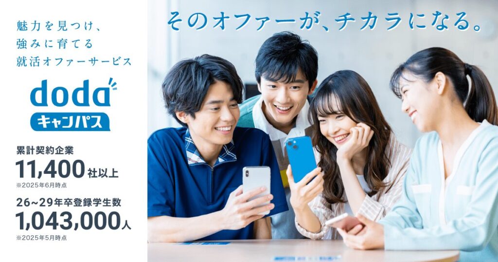 dodaキャンパスはベネッセとパーソルキャリアが運営する国内最大規模のダイレクトリクルーティングサービスで、約113万人の学生が登録しています。