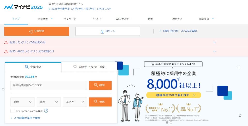 | マイナビ | 就職ナビサイト | 圧倒的な登録学生数 | 大手・大量採用企業 |