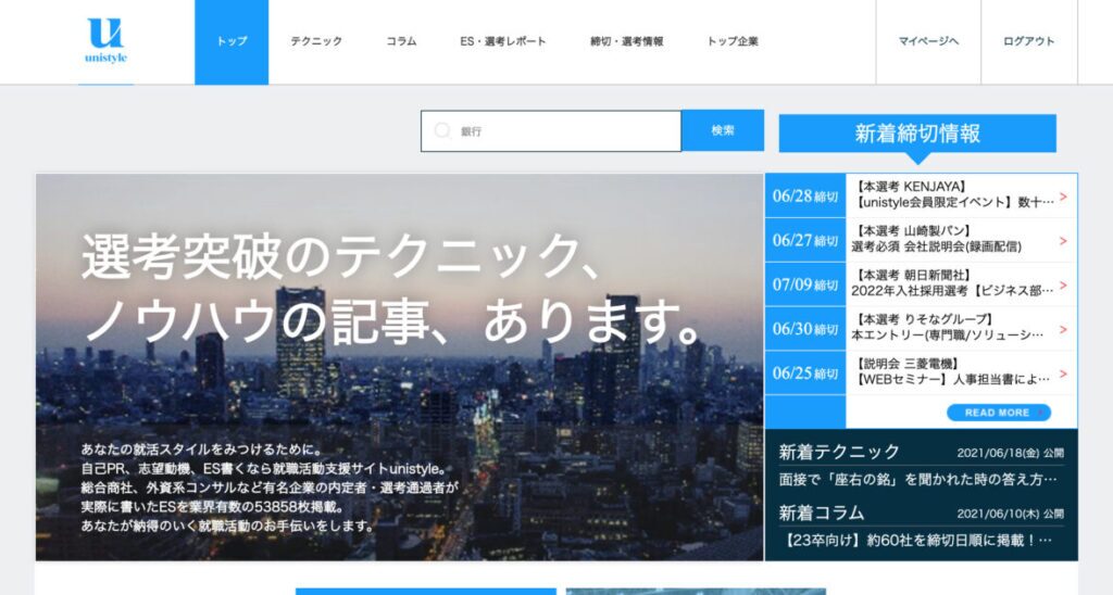 Unistyleは企業の選考情報や内定者のエントリーシート、面接体験記などが集まる口コミプラットフォームです。