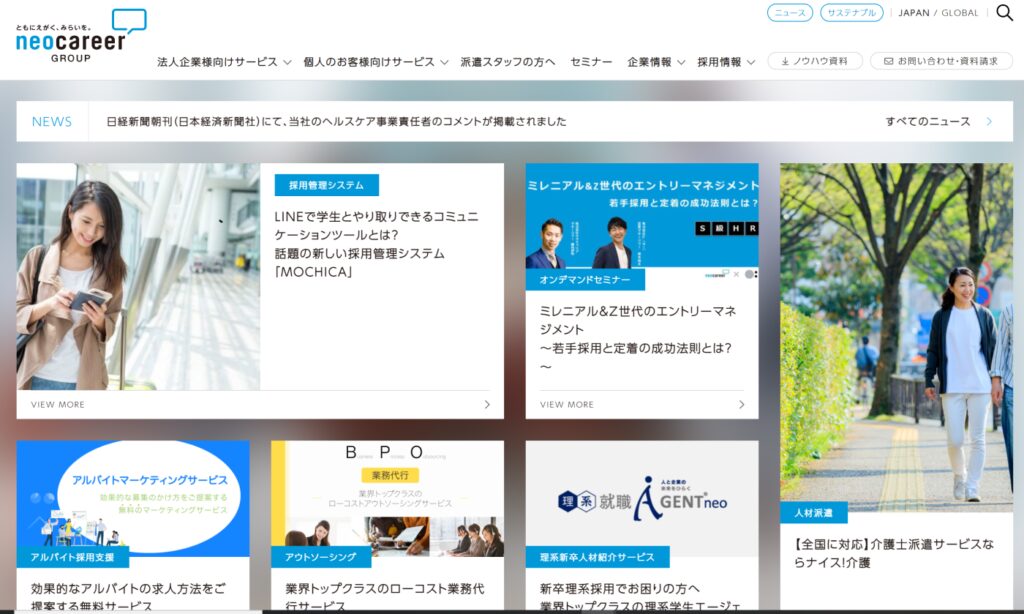 | 就職エージェントneo | 人材紹介 | 成功報酬型・工数削減 | 少人数採用企業 |