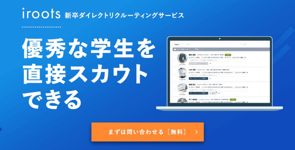 | iroots | ダイレクトリクルーティング | 優秀層の学生 | リーダー候補採用企業 |
