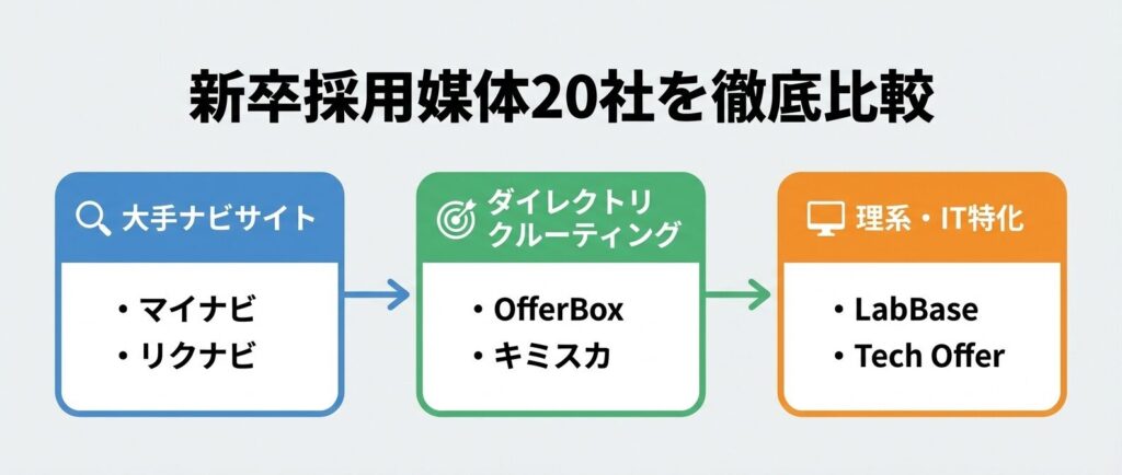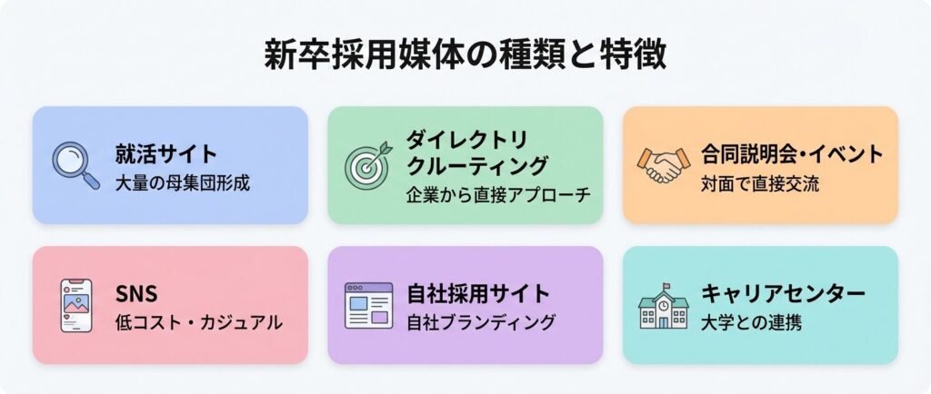 新卒採用市場には多様な媒体が存在し、それぞれ独自の強みを持っています。