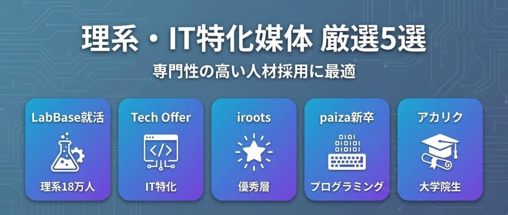 機電系や情報系、化学系など専門性の高い学生を対象としており、技術系人材の採用に強みを発揮します。
