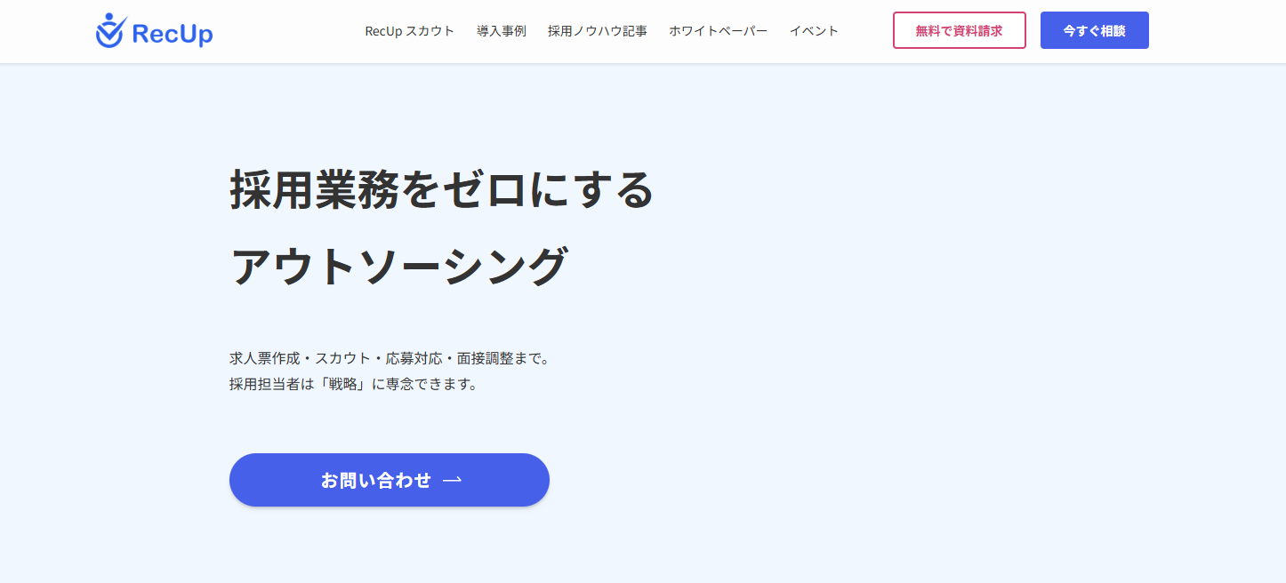 | RecUp RPO | 実務経験者による圧倒的なスカウト返信率と伴走力 | 月額制(要問い合わせ) |