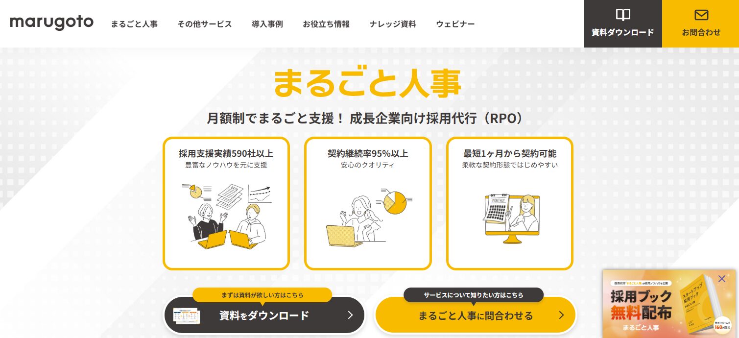 まるごと人事は、ベンチャーや成長企業を中心に高い支持を得ている月額定額制の採用代行サービスです。
