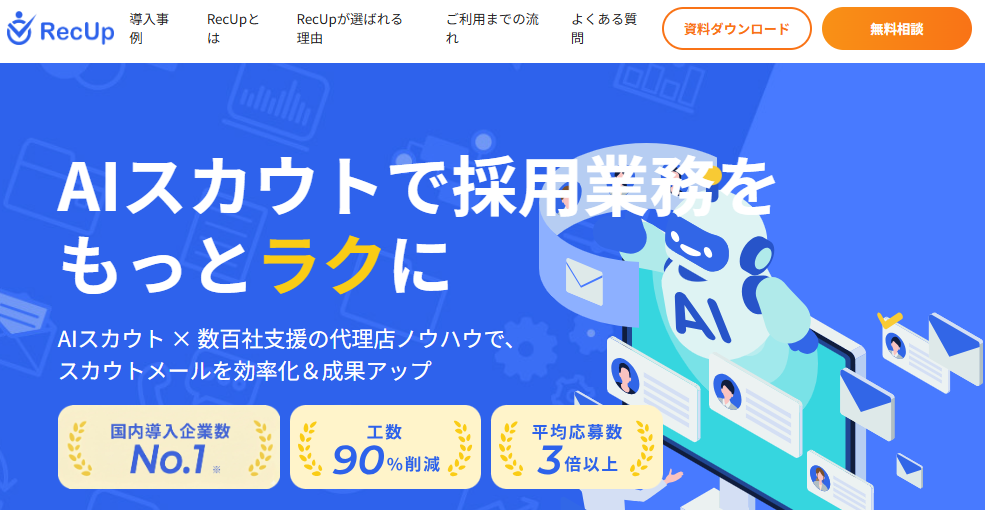 \スカウト業務の効率化ならAIスカウト「RecUp」にご相談ください/