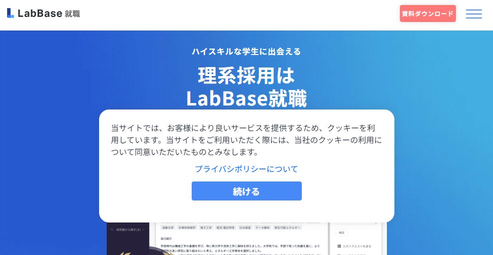 | LabBase就職 | 約4万人 | 理系学生特化 | 先行投資型 |