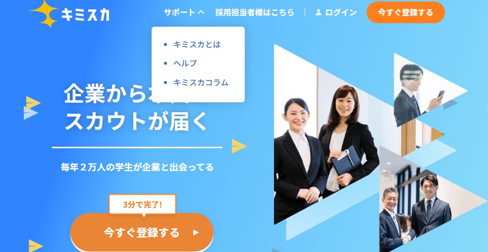 | キミスカ | 約13万人 | 適性検査結果を活用 | 先行投資型 |