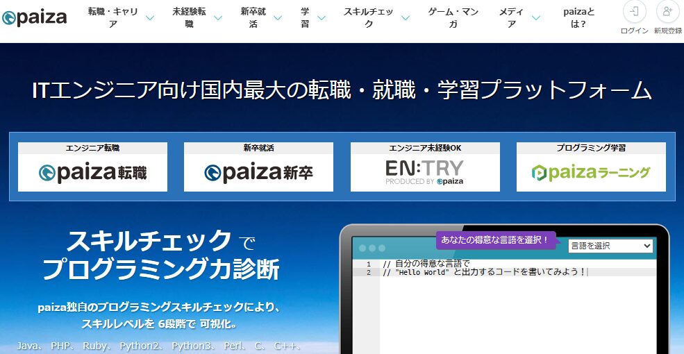 paizaは、プログラミング試験と連動したエンジニア向け採用サービスです。技術力を定量的に可視化できるため、即戦力かどうかを判断しやすくなります。