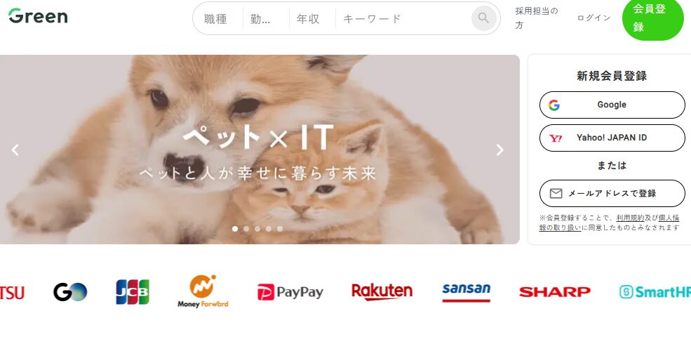 Greenは、IT・Web業界に強みを持つ採用サービスです。ベンチャー企業の利用が多く、カルチャーフィットを重視した採用が行えます。