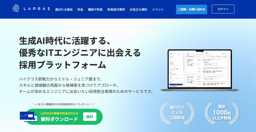 LAPRAS SCOUTは、エンジニアのスキルを定量化して可視化できるサービスです。即戦力判断がしやすく、データに基づいた採用が行えます。