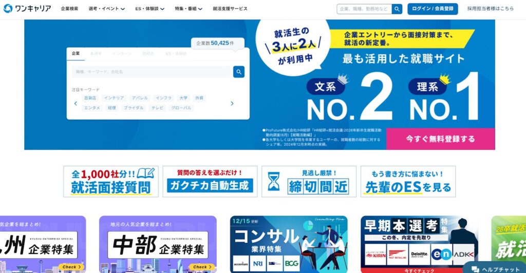 ワンキャリアは、就活生の約6割が利用しているとされる大規模なプラットフォームです。