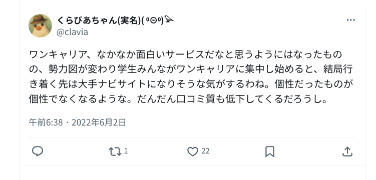 SNS上にはネガティブな声もある一方で、ワンキャリアを高く評価する学生の声も数多く見られます。