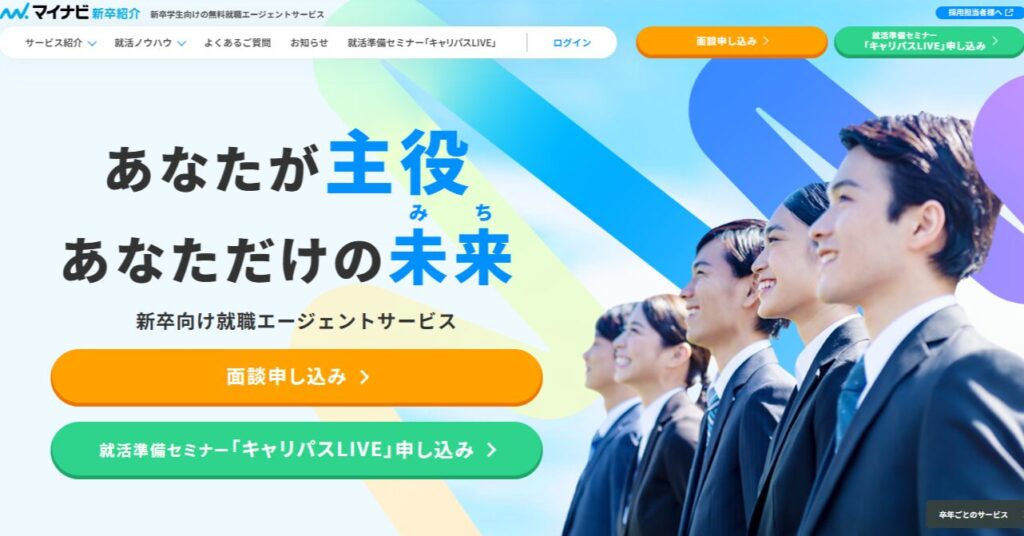 マイナビ新卒紹介は、株式会社マイナビが運営する新卒採用の人材紹介サービスです。就活サイト「マイナビ」との連携により、膨大な学生データベースを保有している点が最大の強みとなっています。ナビサイトで集めた学生情報を活用し、企業のニーズに合った人材を効率的に紹介することが可能です。
