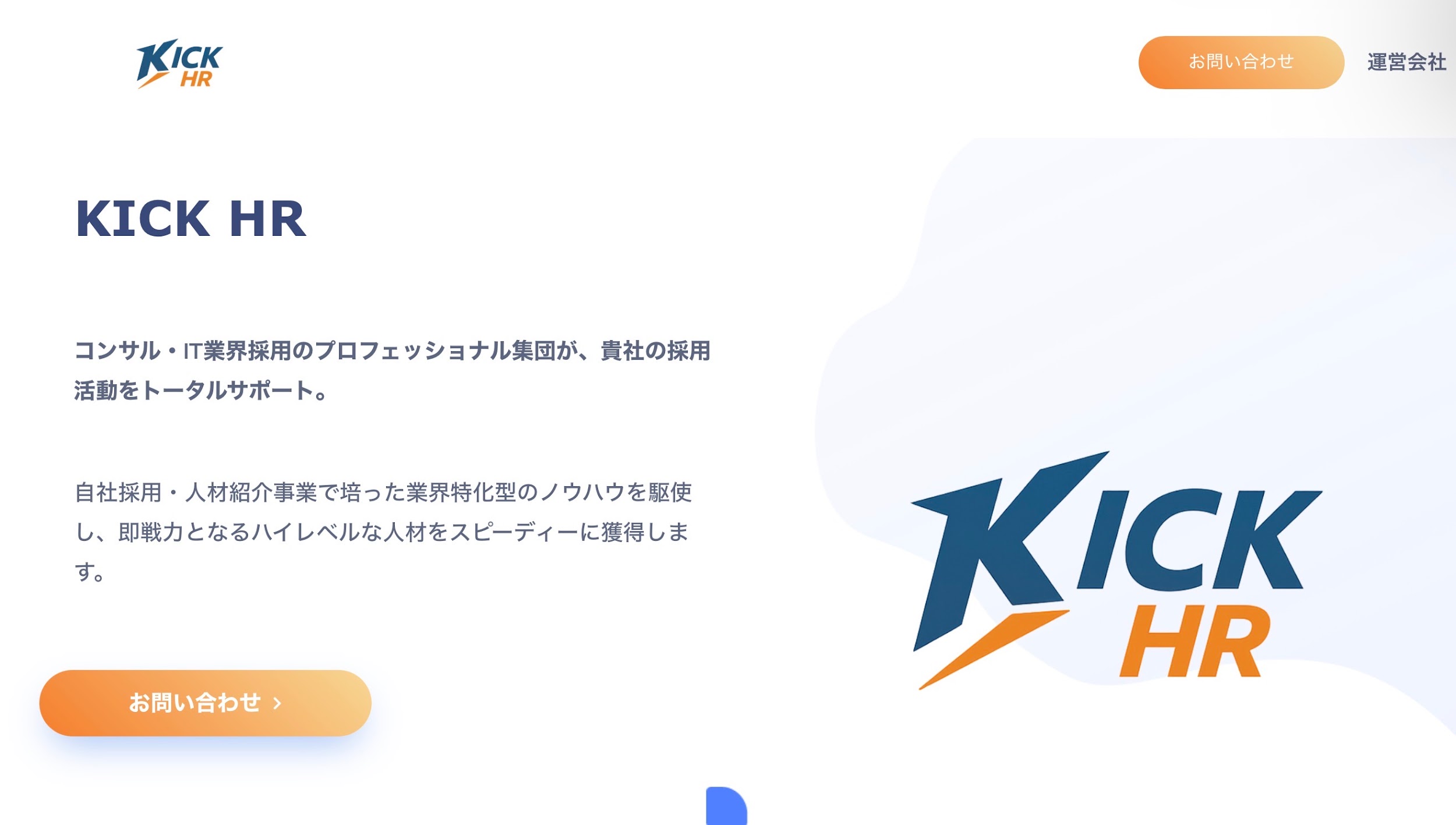 KICK HRは、ベンチャー企業やスタートアップ向けに特化した採用代行サービスです。急成長中の企業が直面する採用課題に精通しており、スピード感を持った柔軟な対応が特徴です。組織拡大期に必要な大量採用から特定のポジションのピンポイント採用まで、幅広いニーズに対応できます。