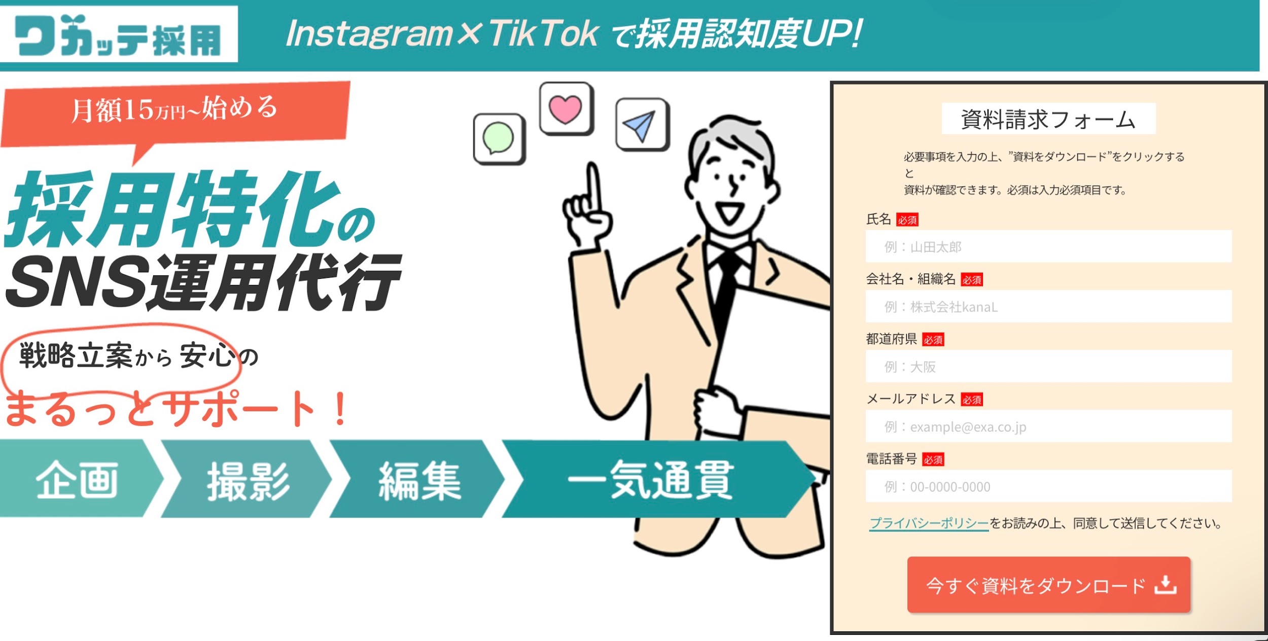 wakaruは、Instagram運用に特化した採用支援サービスで、ビジュアル重視のコンテンツ制作に強みを持っています。Instagramは写真や動画を通じて企業の世界観を表現しやすいプラットフォームであり、特にクリエイティブ職や若年層向けの採用に効果的です。