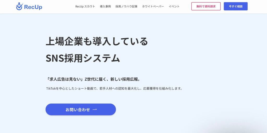 特に、TikTokを活用した若年層向けプラットフォームでの採用実績が豊富な点が強みです。自社での運用に限界を感じている、もしくはこれからSNS採用を本格化させたいと考えているなら、RecBuzzへの相談を検討してみてはいかがでしょうか。