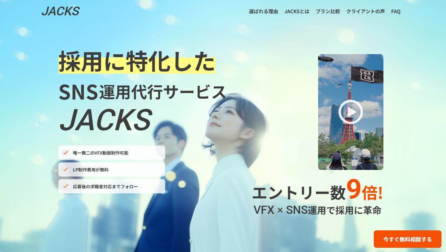 JACKSは、完全成果報酬型の料金体系を採用しているSNS採用代行会社です。成果が発生した場合のみ費用が発生するため、初期コストを抑えたい企業に適しています。