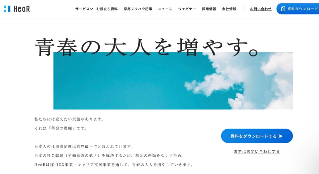 HeaR株式会社は、データ分析に基づく戦略的な採用支援を得意とする会社です。採用市場の動向分析やターゲット層の行動分析を活かした戦略設計が特徴で、科学的なアプローチで成果を追求します。