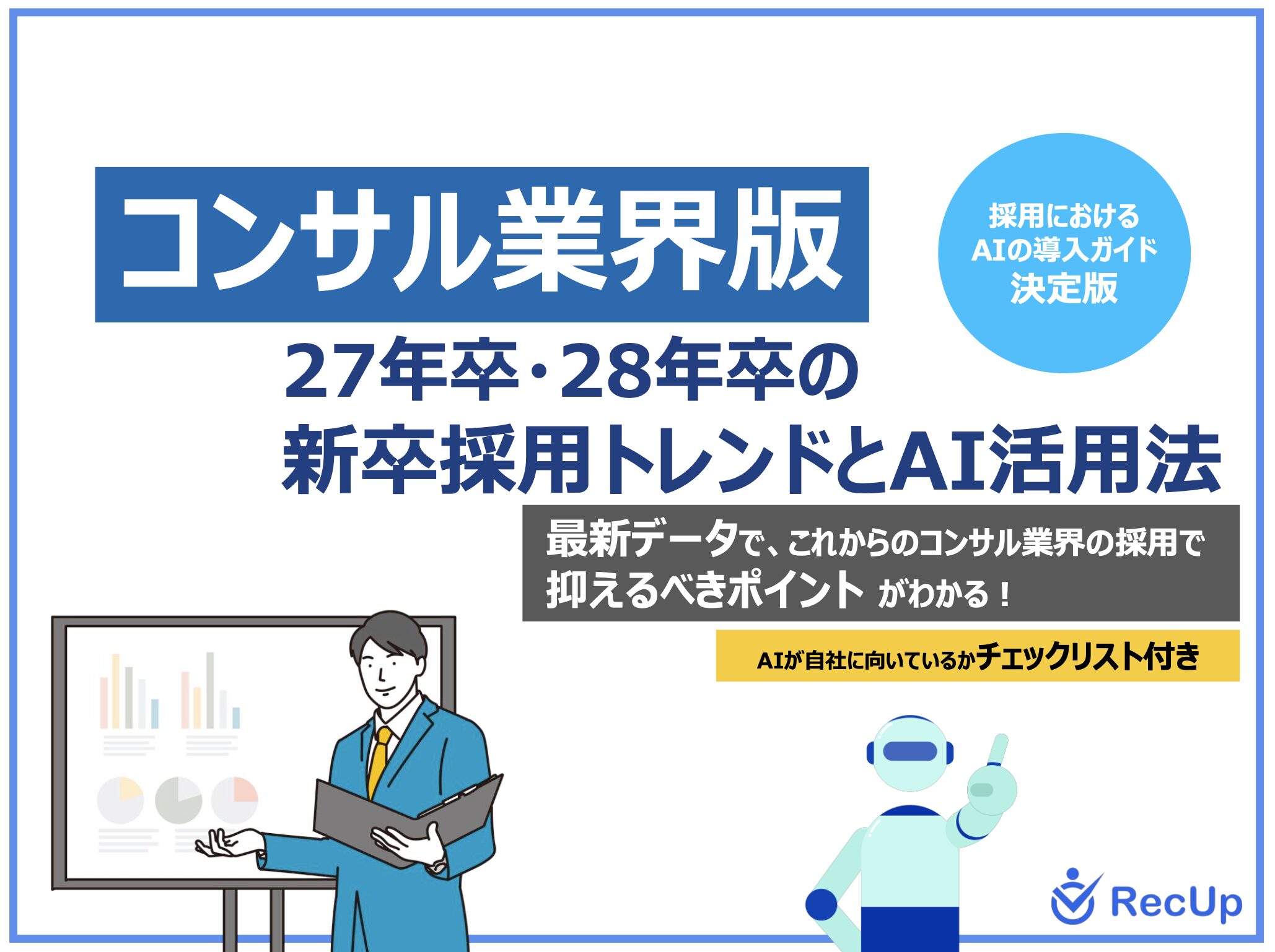 本資料では、コンサル業界の27年卒・28年卒の新卒採用市場を「構造」の視点で整理し、採用を成功に導く「仕組み化の考え方を解説。業務を「コア」と「非コア」に分け、AI活用で再現性ある採用体制を構築する方法や導入事例も紹介しています。