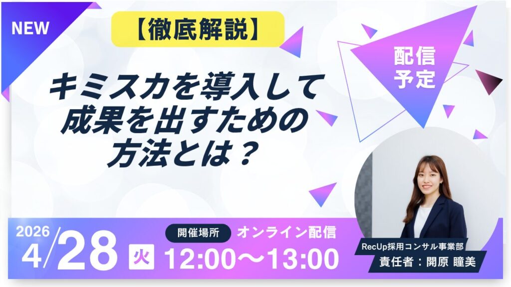 本ウェビナーでは、キミスカを活用して採用成果を最大化するための具体的な運用方法を、実践ベースで徹底解説します。