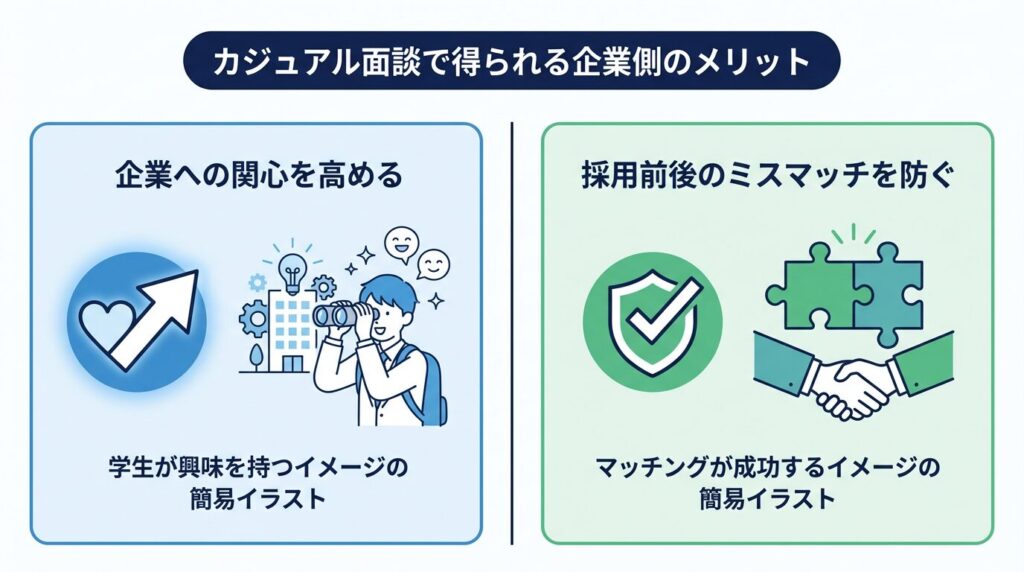 この章では企業がカジュアル面談を通じて得られる主なメリットを2つ整理しています。